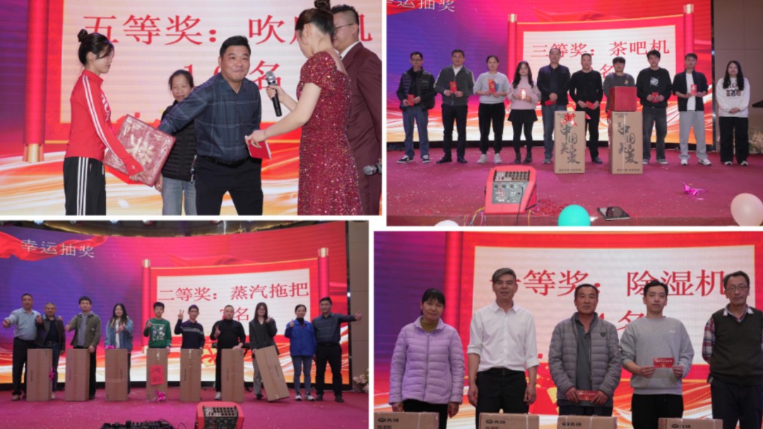 而在大家沉浸于表演之时,抽奖环节的突然到来更是让现场气氛瞬间爆棚。一份份精美的奖品在员工们之间传递,幸运儿们的欢呼声与未中奖者的羡慕声交织在一起,将年会的欢乐氛围推向了顶点。